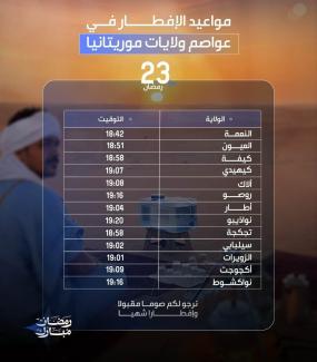 أوقات إفطار اليوم الـ22 من رمضان في عموم موريتانيا