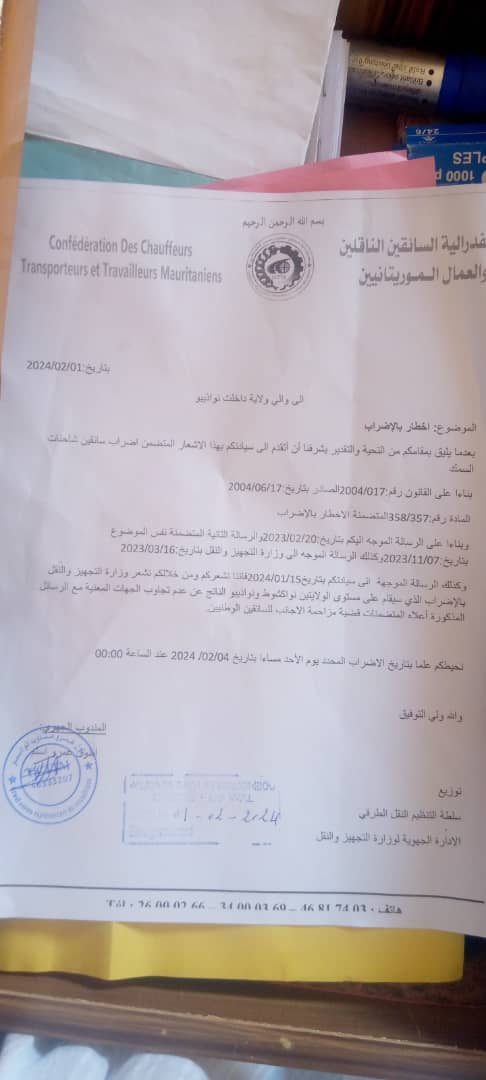 نواذيبو:ناقلو السمك يودعون إخطارا بالإضراب