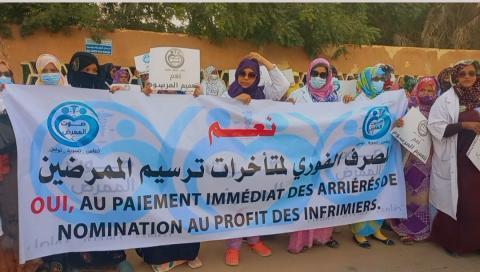 وناشد الممرضون رئيس الجمهورية محمد ولد الشيخ الغزواني بالتدخل من صرفهم حقوقهم المتأخرة معربين عن رفضهم لمماطلة وزارة المالية وتمنعها عن صرف هذه المستحقات رغم مضي فترة طويلة على استحقاق.