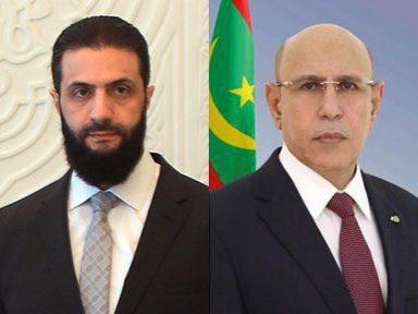 نأ رئيس الجمهورية محمد ولد الشيخ الغزواني نظيره السوري أحمد الشرع بمناسبة توليه رئاسة المرحلة الانتقالية في سوريا.