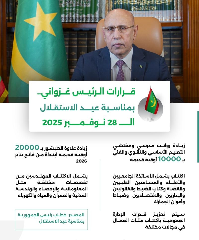 الرئيس غزواني يعلن عن زيادات في الرواتب واكتتابات جديدة (انفوغراف)